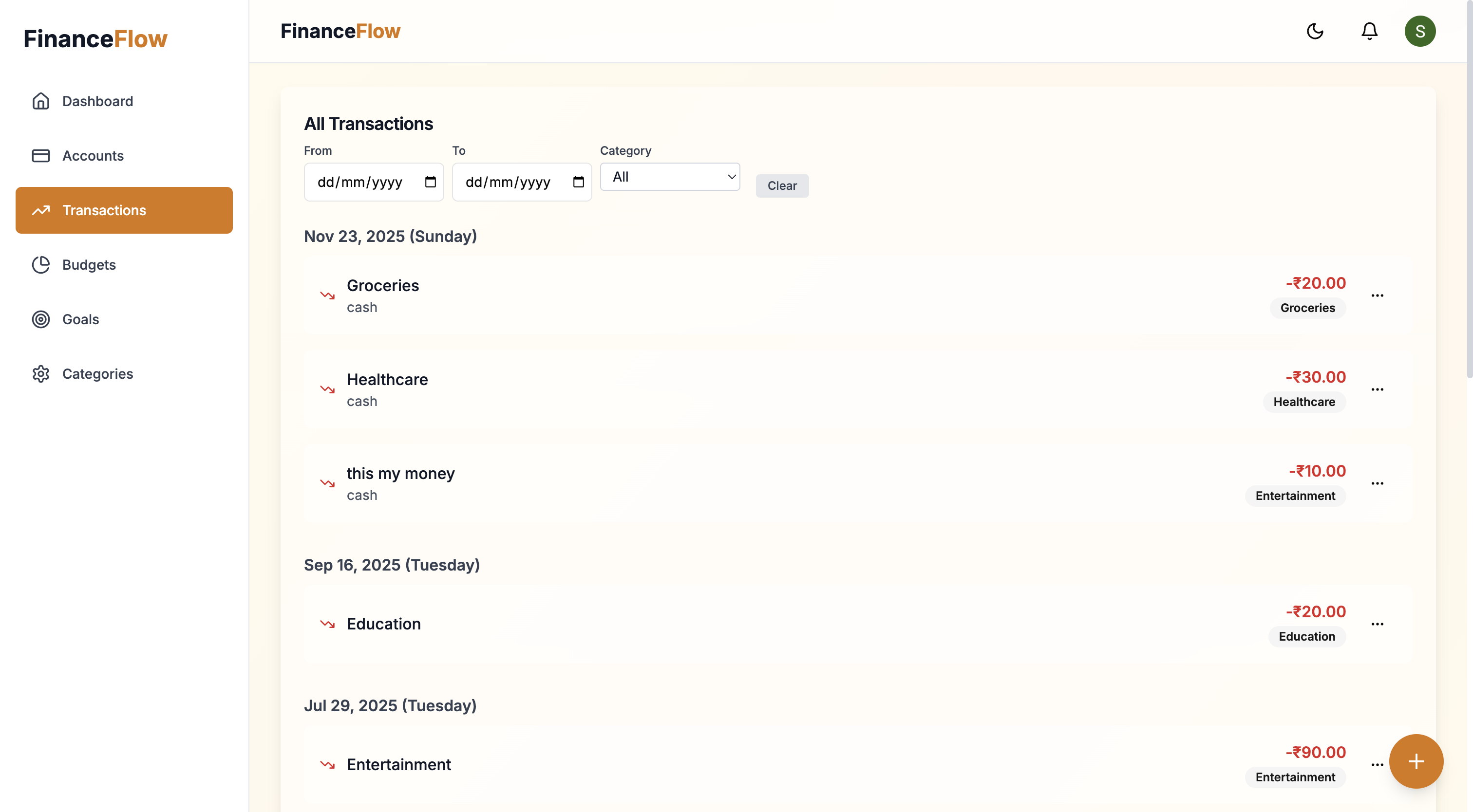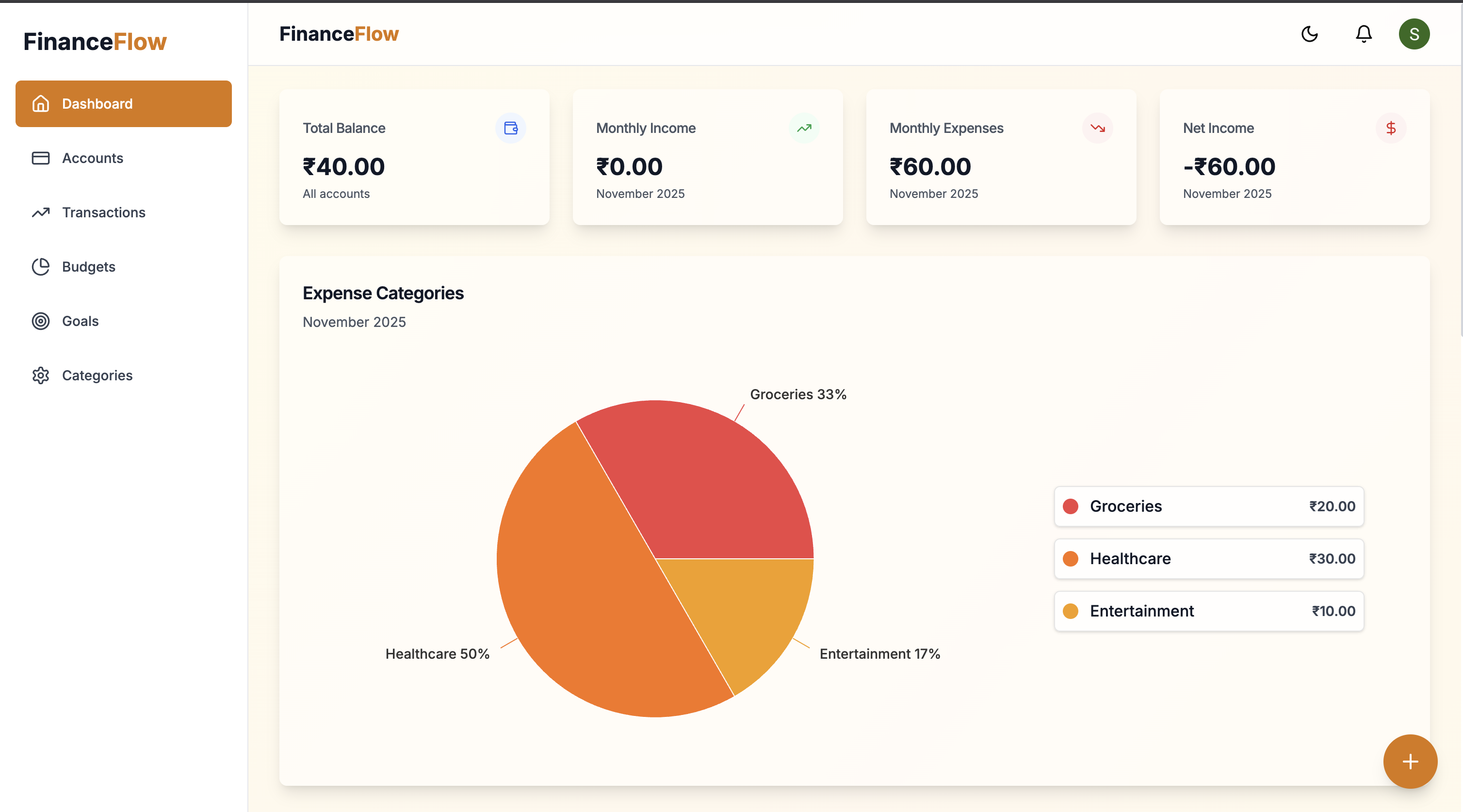 FinanceFlow is a personal expense tracker built to help users categorize, analyze, and control their spending.
