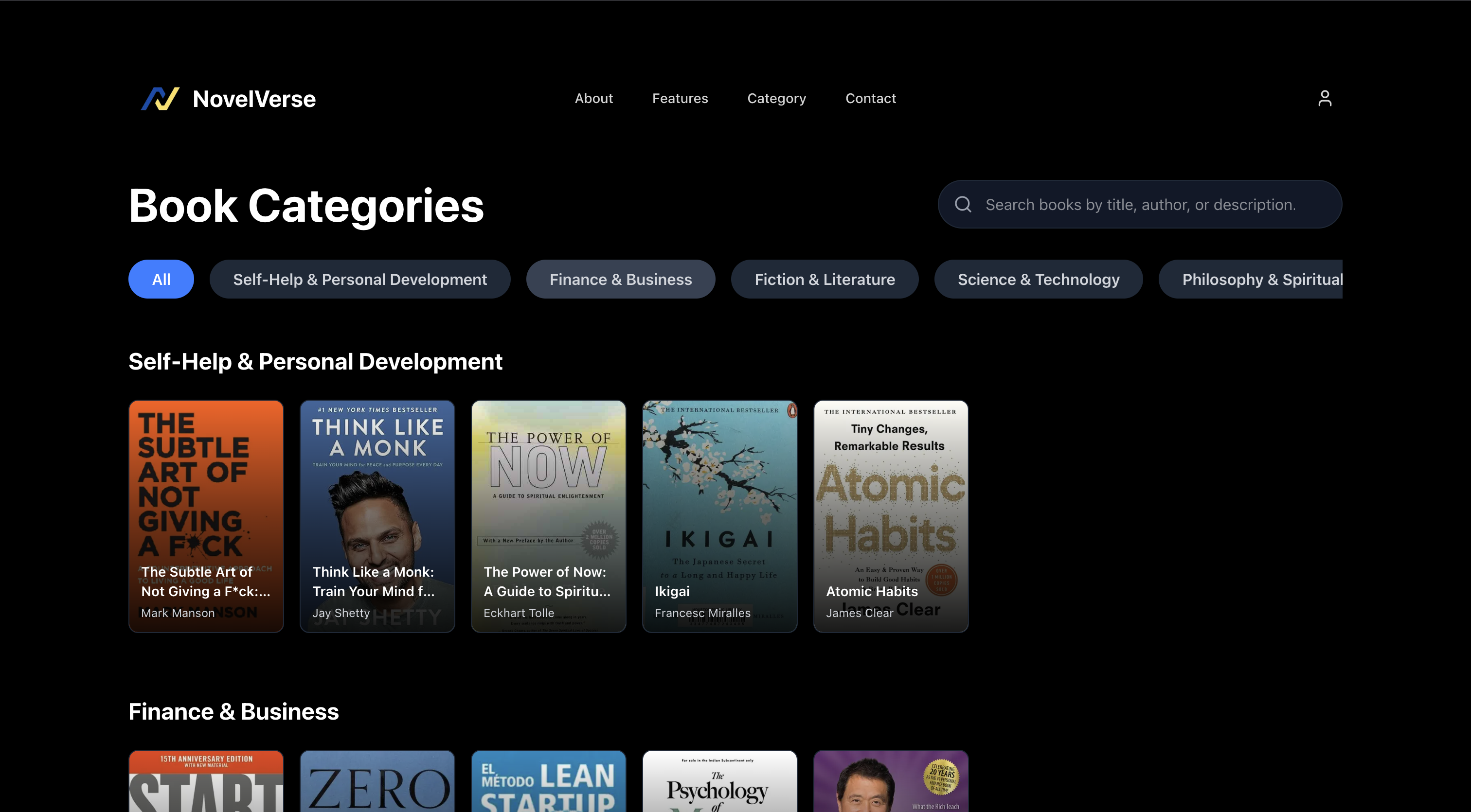 - π Extensive Book Library with category-based filtering